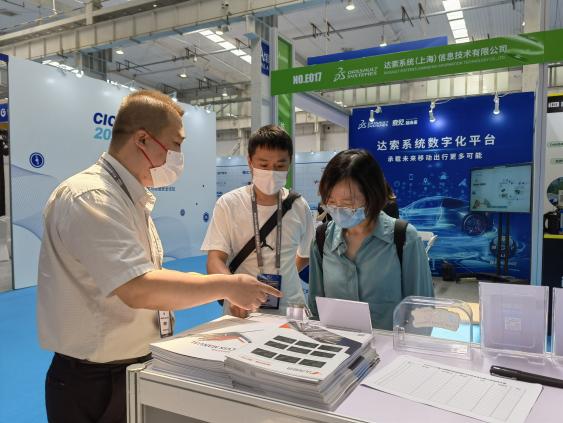 业内人士在高鸿智联展位前交流咨询
